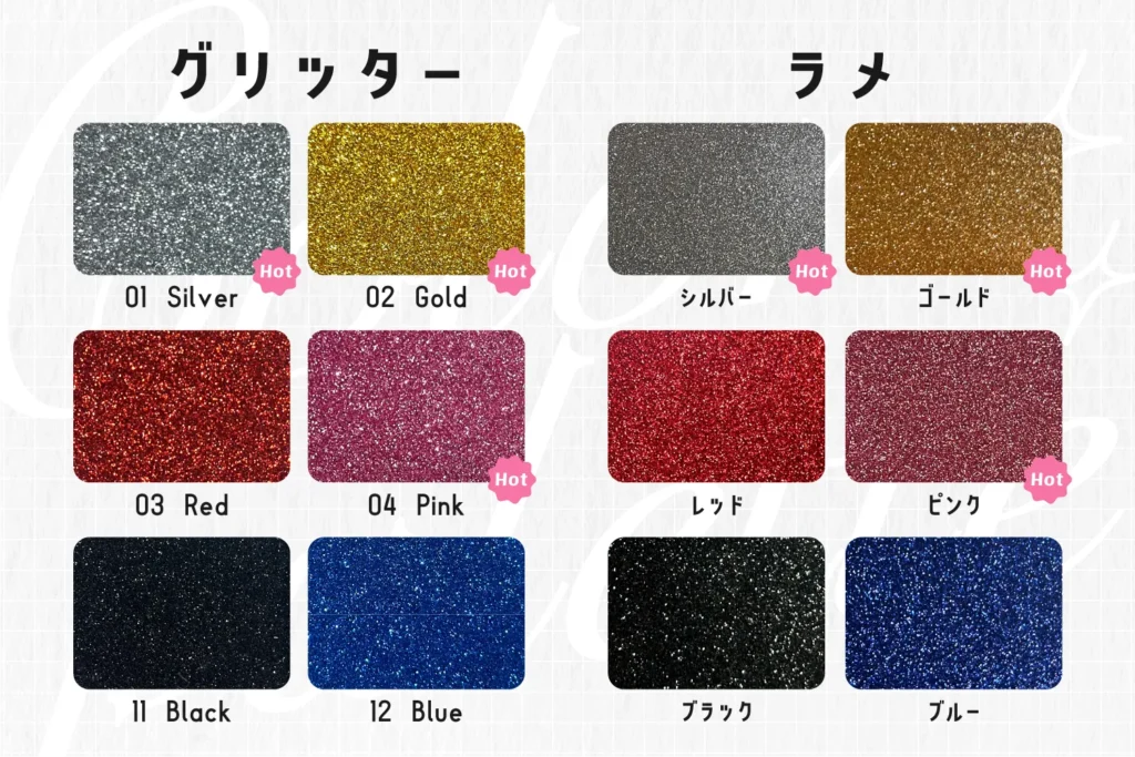 グリッターとラメで使用できるカラーはこちら!